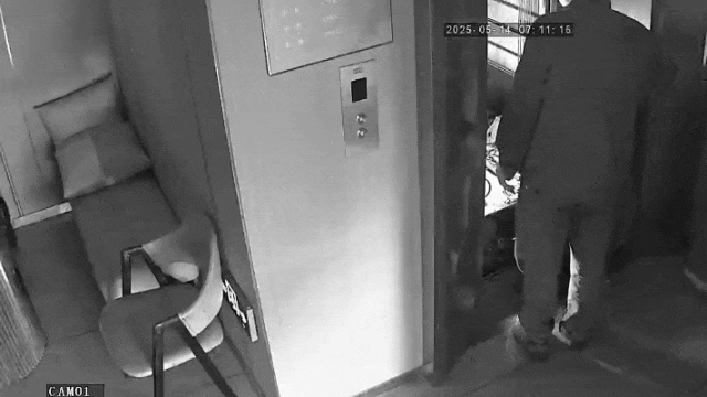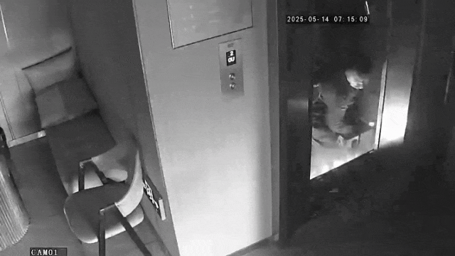 监控视频显示:当天,房子内有三名维修工人进入电梯顶部,另一名工人在电梯外部做安全防护工作。