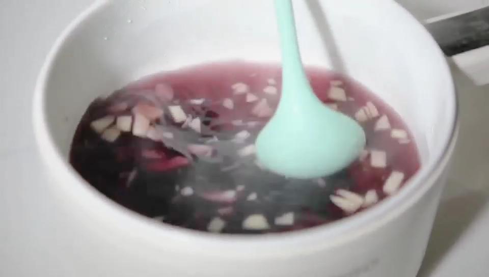 · 锅中倒入500毫升清水,加入黑米、苹果、山药