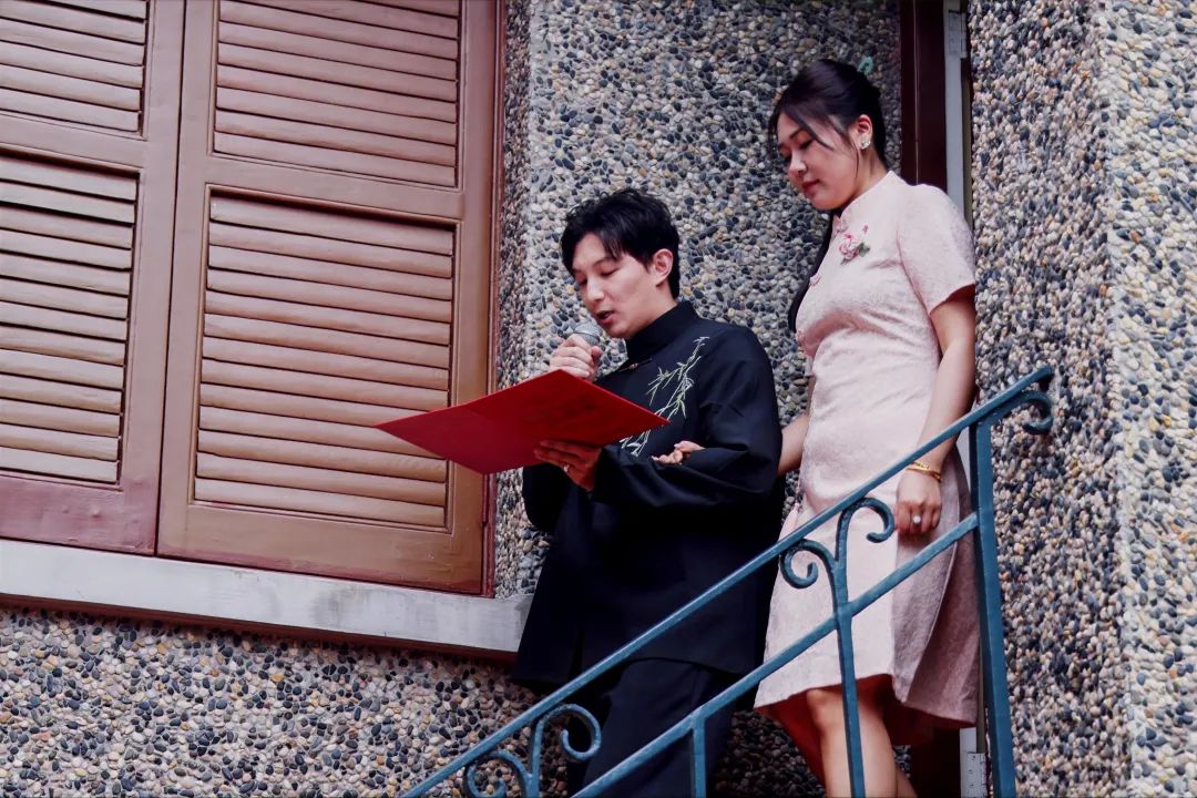 在庄严而温馨的氛围中,10对新人用一种特别的方式携手步入会场:一边用心诵读周恩来与邓颖超的书信,一边携手缓步走入会场,声音在花园中回荡,如同穿越时空的对话,将现场气氛推向高潮,新人们纷纷表示今天的活动很有意义,也表达了对爱情的向往和对革命先辈的敬仰。一对新人告诉记者:“在这样一个特殊的日子里,有幸来参加黄浦区民政局举办的活动,我们觉得特别开心。能够在充满历史底蕴的周公馆见证我们的新婚,我觉得非常荣幸,我们俩都是党员,希望我们的爱情也能够像周恩来、邓颖超夫妇一样,一辈子携手白头到老,携手走下去。”