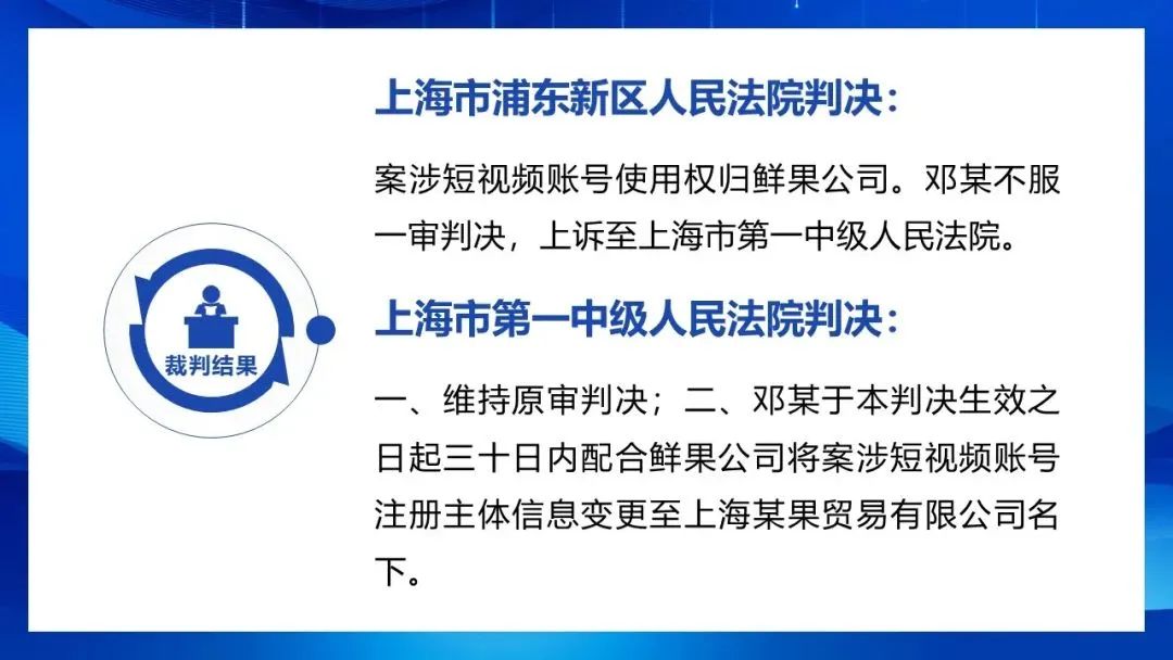 本案在邓某离职前,案涉账号所发布视频内容从未直接展现邓某本人形象或与其相关的内容,关注用户并不能建立对邓某个人的关注。案涉账号在脱离公司运营后,内容风格出现了明显的变化,“粉丝量”视频传播、点赞率均出现大幅下降,已经失去为用户提供原有高质量内容的能力,价值严重贬损。因此,案涉账号价值与邓某之间并不构成不可分的人身属性关联,认定案涉账号使用权归属于真实的价值创造主体即鲜果公司,最有利于增进关注账号的广大网络用户的利益。