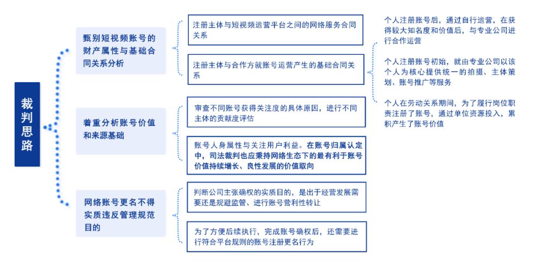 近年来,众多短视频账号以各种形式的内容吸引了大量关注用户,形成了网络流量通道和实际经济价值。优质短视频制作需要持续投入资源运营,许多个人注册账号的运营与专业公司的团队合作相关,出现了名义注册主体与实际使用主体相分离的情况,后续易引发账号权利归属的争议。