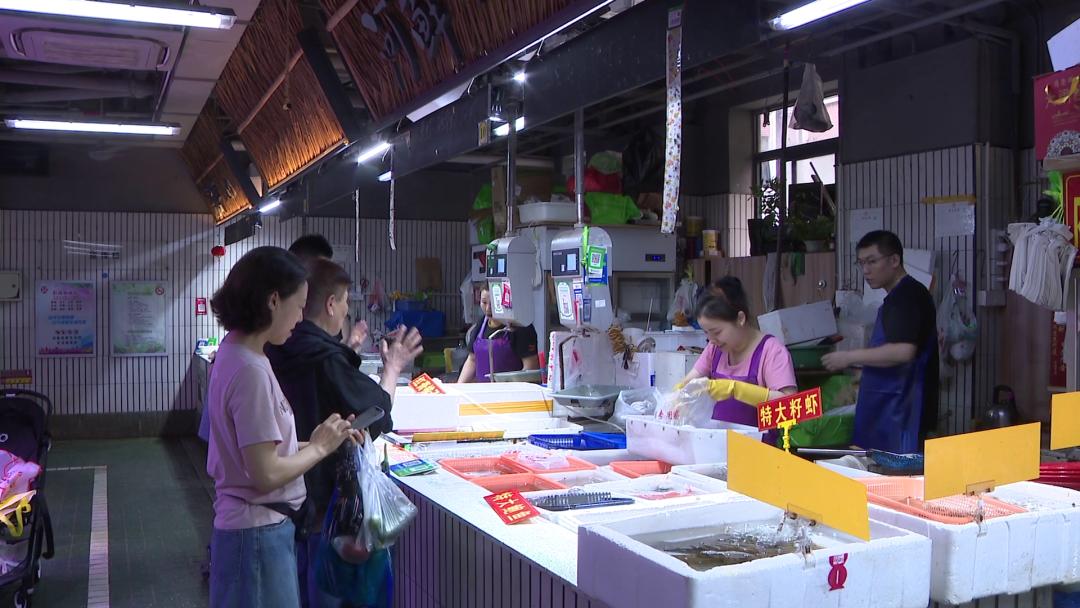 另外,这些天市民喜爱的河虾也开始大量上市,价格呈现腰斩。市民吕爷叔买了一些准备包小馄饨给家里的宝宝吃:“河虾与肉馅包在一起味道鲜美,营养也更加丰富,现在价格下来了正好多买一点。”