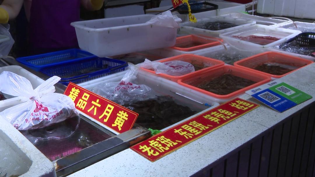 今天上午,记者在上海网红菜场——黄浦区蒙西菜场水产摊位看到,不少摊位都摆出了“六月黄”的招牌,不时有市民前来选购。