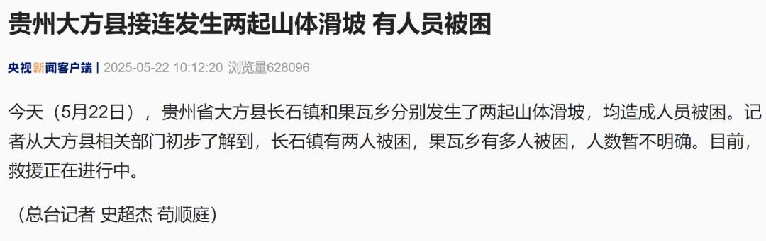 end原标题:《贵州省大方县发生两起山体滑坡,有人被困》