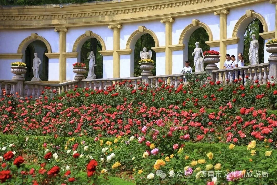 当夏风裹挟着花香漫过泉城,济南植物园的月季正以最热烈的姿态盛放。月季园宛如打翻的调色盘——经典红粉黄交织,罕见绿野、橙柯斯特与复色金奖章点缀其间。