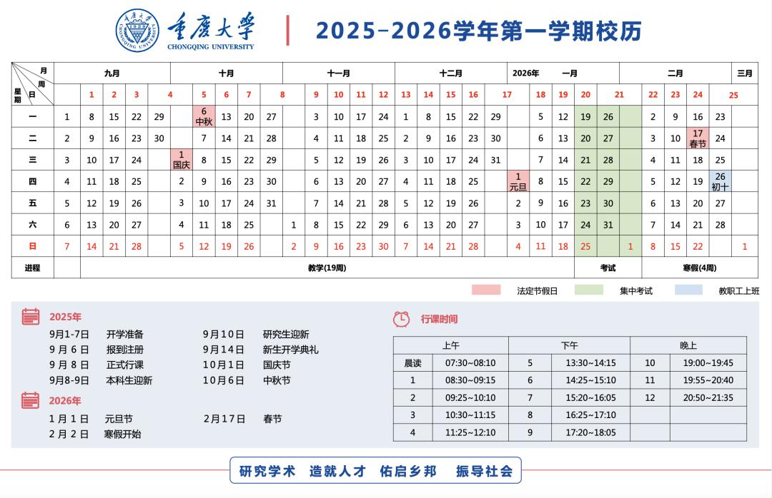 2025-2026学年设置两个学期,教学周次40周,假期12周。