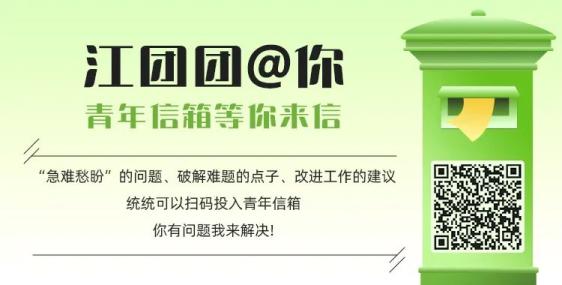 “青春江汉”特别开设“青年信箱”专区,征集青年建议、倾听青年声音、回应青年诉求,帮助解决青年“急难愁盼”问题。有什么问题、困难或者解决建议、方案,统统都可以投递到“青年信箱”。