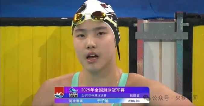 女子200米蝶泳决赛,于子迪以2分06秒83的成绩夺冠,刷新个人最好成绩。如果把这个成绩放在巴黎奥运会决赛,她将获得第四名。