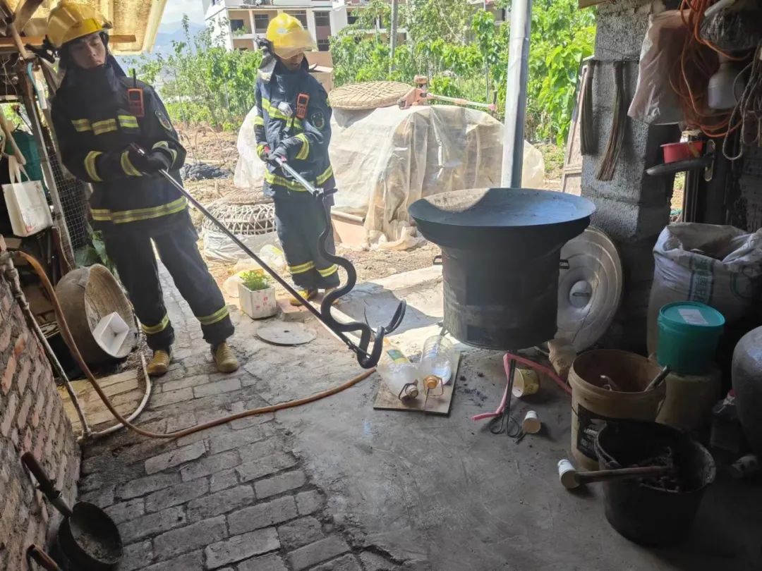 近日,聚龙路政府专职消防救援站接指挥中心调度,前往武侯区太平寺西路处置一起“蛇出没”事件。