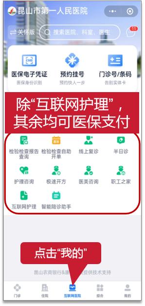 即日起,昆山市第一人民医院的互联网医院打通医保支付功能,实现医保在线结算,主要服务于长期慢性病的参保患者,提供在线复诊配药、检验检查、医保在线支付和药品配送上门等服务。