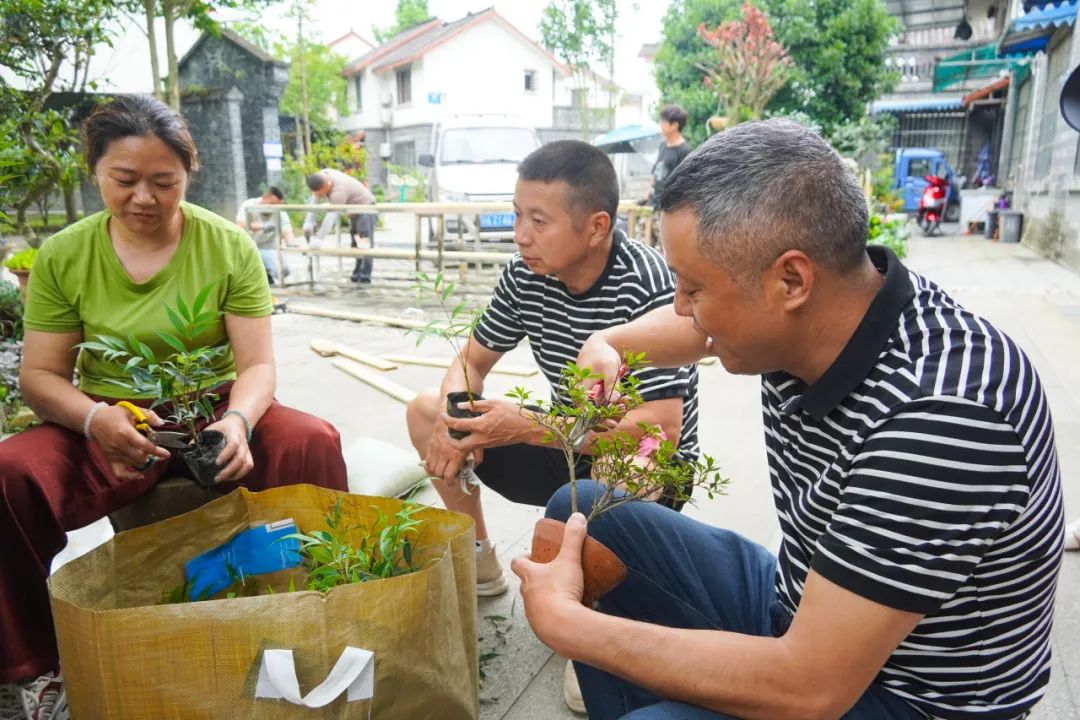 看着先吃螃蟹的人腰包越来越鼓,村民们也坐不住了,在村委的帮助下家家户户都忙着打造自家庭院发展庭院经济。村民陈树海就是其中之一,他将自家100平方米的庭院改造成“微型盆景园”,根据季节变化调整展陈布局:春季以杜鹃、海棠为主,夏季搭配六月雪、六月桂,秋冬则主打松柏、金弹子。“我把展示售卖的盆栽进行分区域摆放,分为多肉王国、掌中造物以及东方雅韵,游客来了不仅能买盆景,还能学造型技巧、体验种植乐趣。”对于怎样打造庭院,陈树海有着自己的想法。