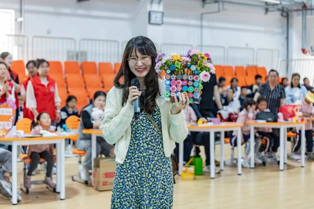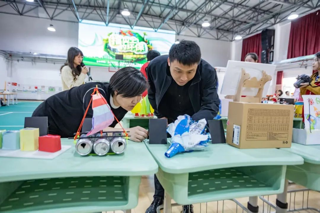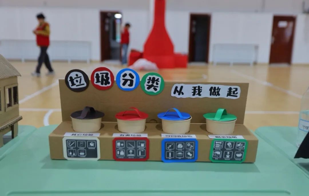 活动设置了手工自制垃圾箱评比环节,孩子和家长们利用纸盒、酸奶瓶、矿泉水瓶、毛线等废旧物品,发挥创意,制作出既实用又美观的垃圾箱。评委们根据“实用性、创意性、环保性”三个标准评选出6组亲子家庭并颁发精美礼品。