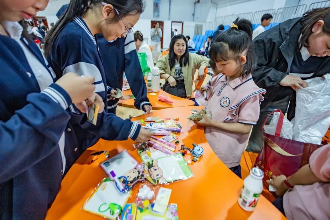 在活动的核心环节—跳蚤市场,亲子家庭带来了手链、玩偶、绿植、发卡、手工风铃等物品进行交换或出售。琳琅满目的集市上,大家或以物换物,或义卖售出,都收获满满,笑容晏晏。