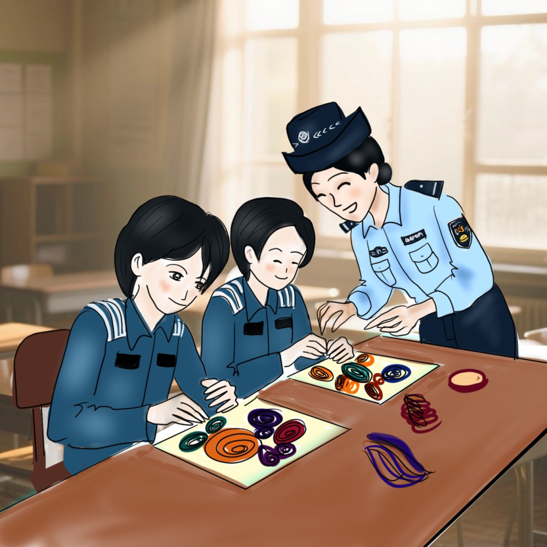 为进一步帮助刘丽走出家暴阴影,更好地融入改造生活,民警安排她参加监狱组织的积极心理品质团辅活动。起初,刘丽对活动消极应对,到后来主动参与,从沉默寡言到慢慢融入集体。在这个过程中,她学会了敞开心扉,懂得了团队合作,也学会了接纳与帮助他人,情绪管理能力不断提升。此外,监区民警鼓励她参加监区特色文化活动,学习制作衍纸画。经过一段时间的学习,她的作品入选监区成果作品展,这极大地鼓舞了她,让她的改造状态愈发积极。