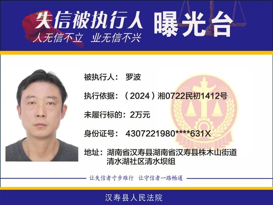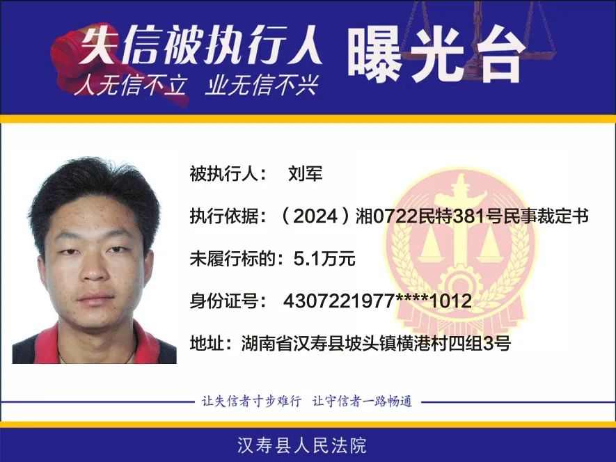 原标题:《【曝光台】2025年第五批失信被执行人名单曝光!》