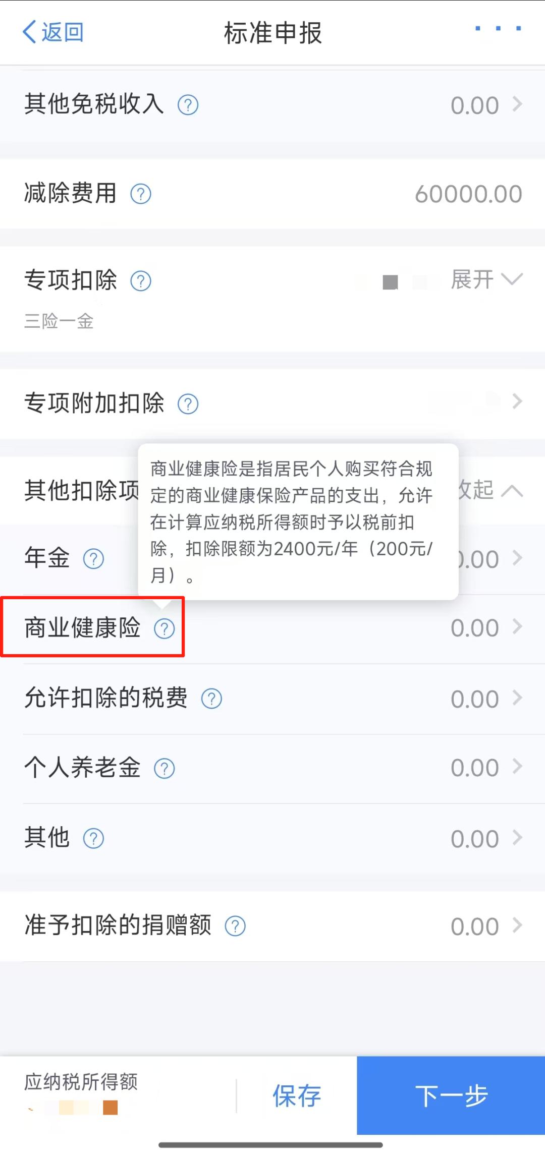 答:在个人所得税综合所得年度汇算期间,打开个人所得税App,进入“综合所得年度汇算申报”,选择“标准申报”,核对个人基本信息无误后,点击“下一步”,在“其他扣除项目”中找到“商业健康险”,点击“新增”,填入税优识别码和相关保费信息,确认信息无误后提交即可。
