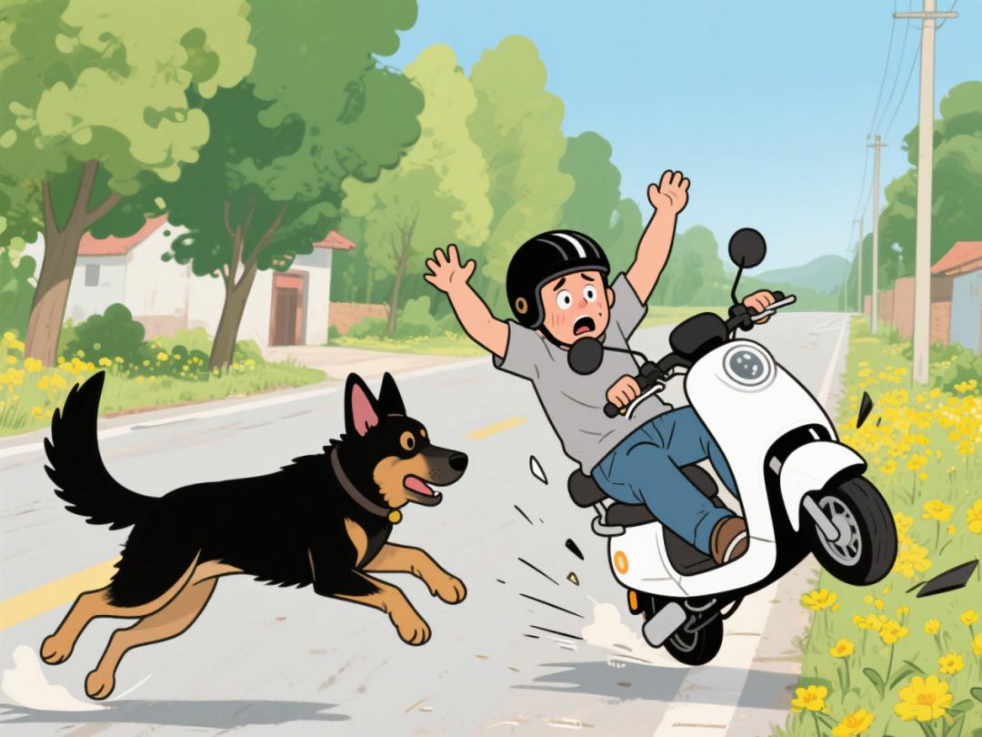 场景3:犬只追逐路人致其受惊吓摔伤