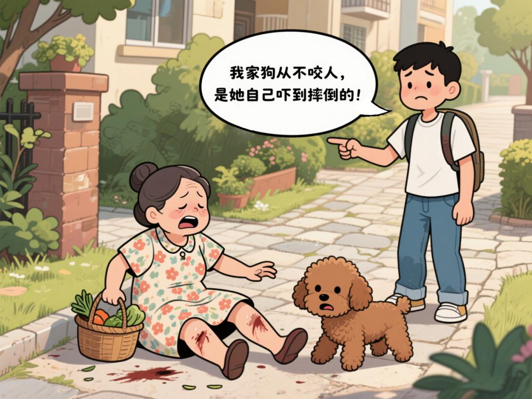 李阿姨在小区散步时,偶遇邻居小张未拴绳遛狗。小张的泰迪犬突然冲过来扑咬李阿姨,导致李阿姨摔倒骨折。小张辩解:"我家狗从不咬人,是她自己吓到摔倒的!"