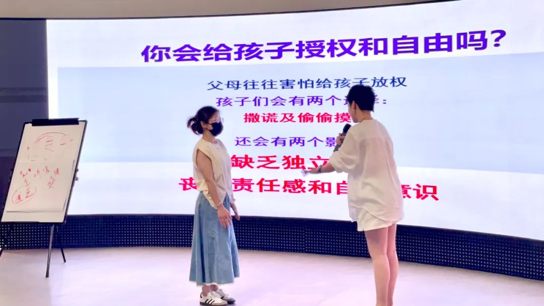 随后,陈莺莺老师通过精心设计的三轮游戏互动环节,带领家长亲身体验三种常见的亲子关系模式:共生、挟持与寄生。通过角色扮演与情境模拟,家长们在轻松有趣的氛围中深入感受不同关系模式对孩子心理发展的影响。现场气氛活跃,许多家长积极分享了自己的体验与感悟,在交流中碰撞出思想的火花。