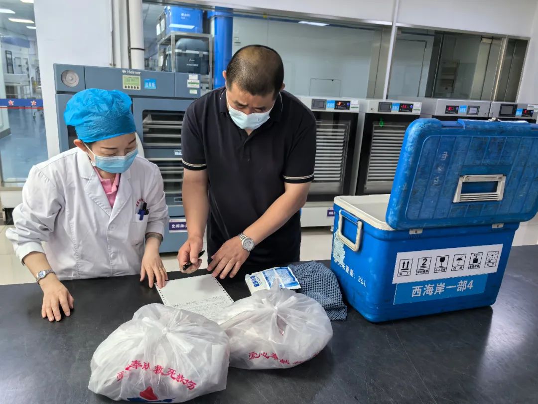 5月26日,青岛市卫生健康委医疗应急处组织开展青岛市突发事件血液保障应急演练,青岛市中心血站、西海岸新区卫健局、西海岸新区人民医院参与演练。市卫生健康委医疗应急处二级调研员罗耀钦,市中心血站党委书记、站长逄淑涛,副站长王迎春、张燕华,西海岸新区卫健局、西海岸新区人民医院输血科相关负责同志参加演练。