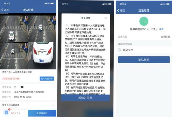 3、处理违法时,只能处理绑定后产生的交通违法,之前的不可以处理。