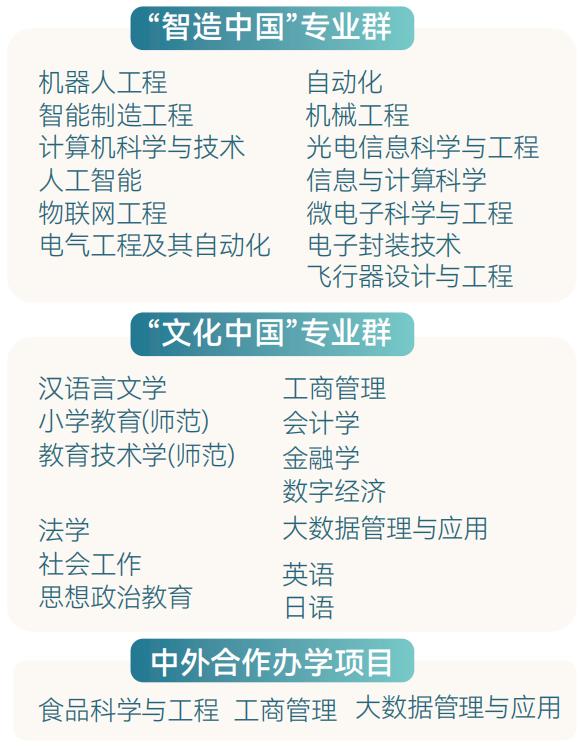 部省共建,市校共建江南大学的发展得到教育部、江苏省以及无锡市合力的支持,形成“一体两翼”办学格局。学校2025年本科招生专业56个,其中飞行器设计与工程、智能交互设计、预防医学、数字经济为2025年新专业,大数据管理与应用(中外合作办学)首年招生,期望为发展新质生产力、推动国家高质量发展培养急需人才。