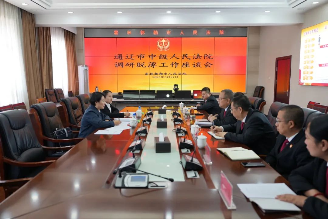 5月27日,通辽市中级人民法院党组成员、政治部主任杜祎一行深入霍林郭勒市人民法院调研指导脱薄工作。此次调研通过“面对面”谈心谈话、“零距离”座谈交流等方式,精准查找工作薄弱环节,为推进霍市法院整体工作提质增效“把脉问诊”“开方抓药”。