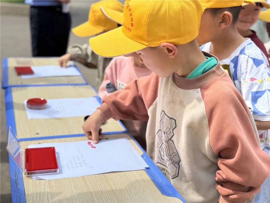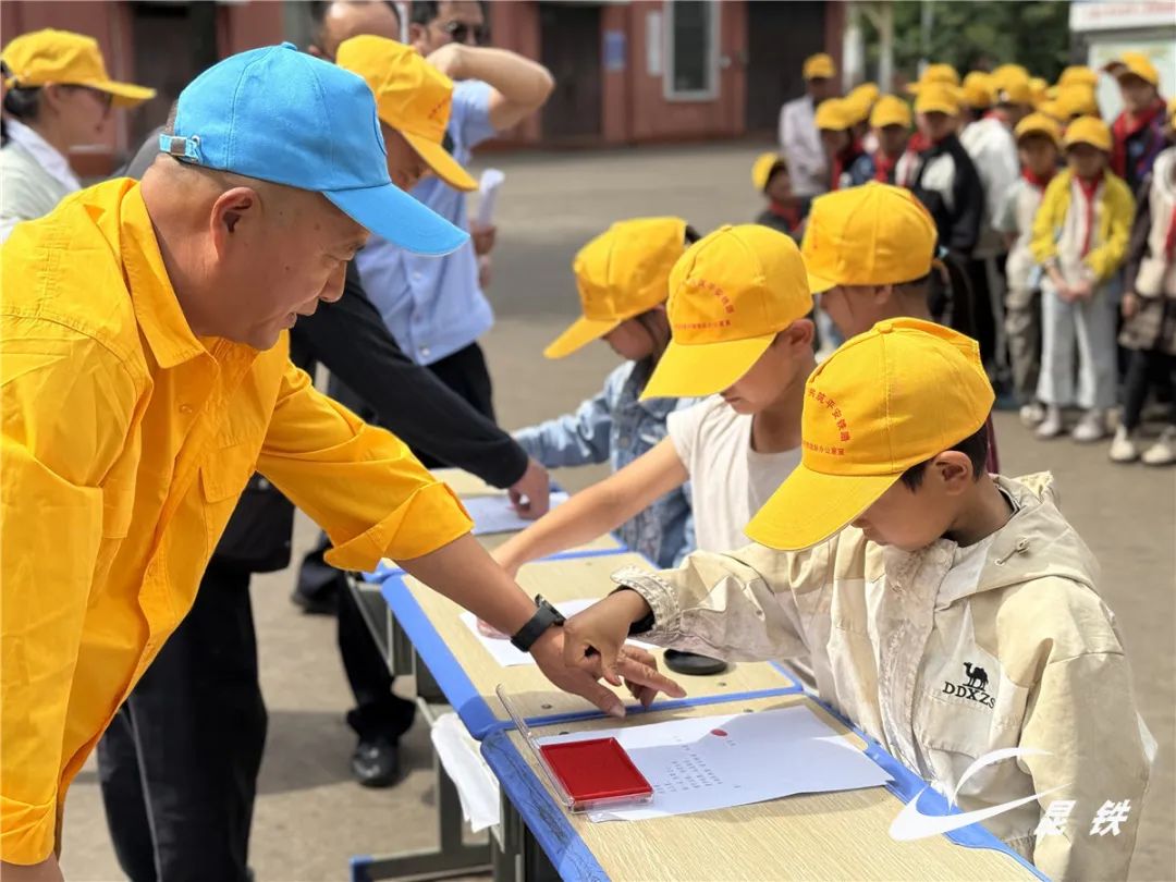 “小黄帽”代表宣读《爱路护路倡议书》,同学们在爱路护路承诺书上郑重按下自己的手印。