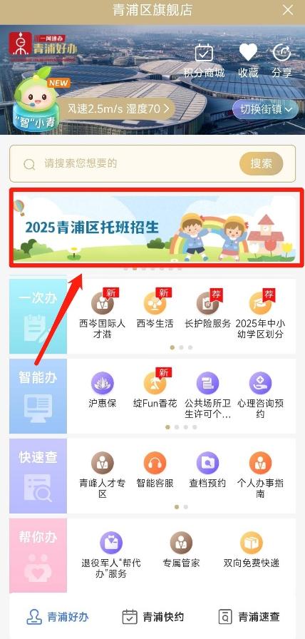2.在“青浦旗舰店”内点击“2025青浦区托班招生”进入服务
