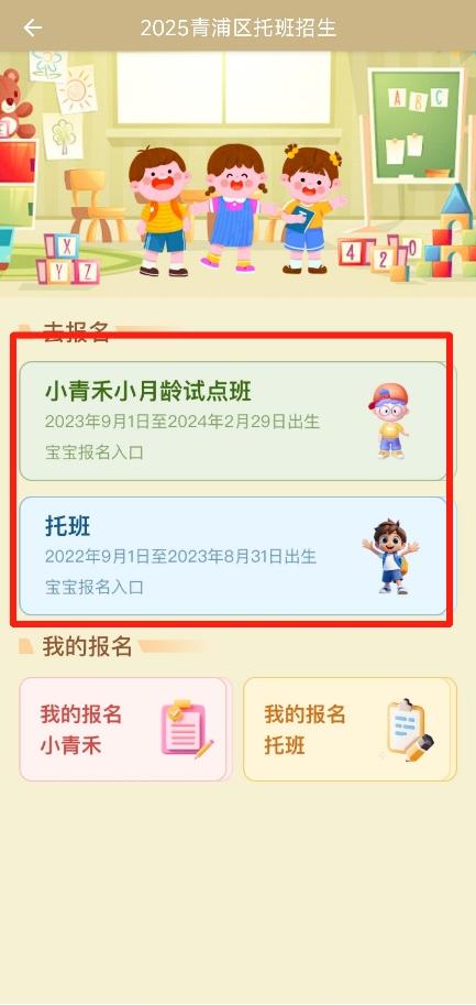 4.根据报名要求和自身条件选择小青禾小月龄试点班、托班进行信息登记