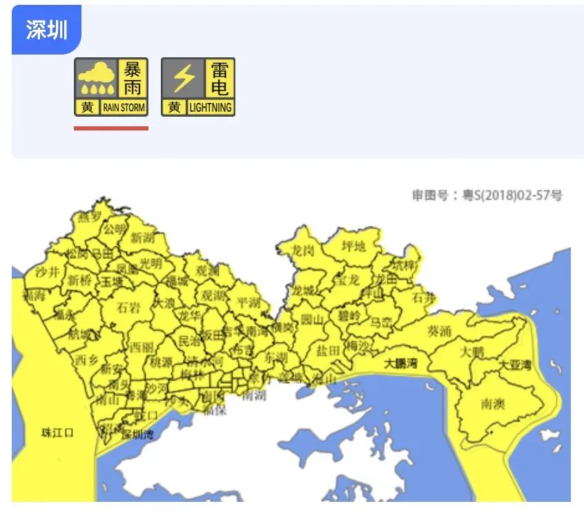 深圳市暴雨黄色预警信号扩展至全市