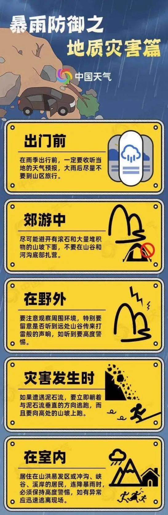2.注意防范持续降雨造成的积涝、滑坡等次生衍生灾害;市民注意远离低洼易涝区、危房、边坡、简易工棚、挡土墙、河道、水库等可能发生危险的区域。