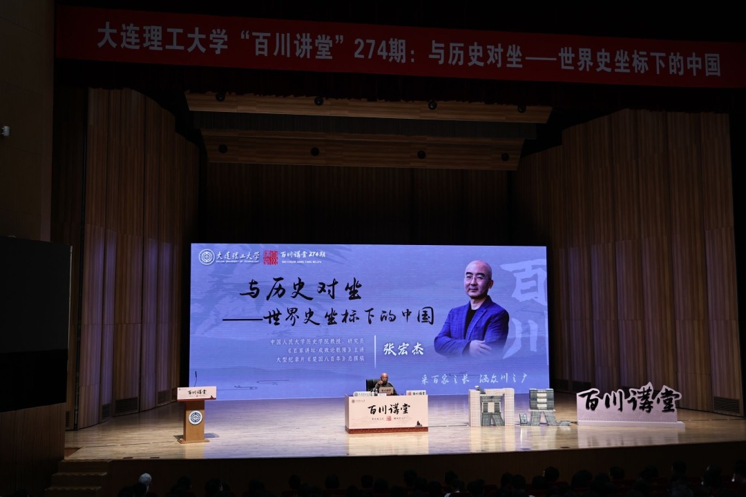 与历史对坐,在世界史坐标下重新审视中国的发展脉络。5月20日,中国人民大学历史学院教授、研究员,《百家讲坛-成败论乾隆》主讲,大型纪录片《楚国八百年》总撰稿张宏杰教授做客“百川讲堂”第274期,带来主题为《与历史对坐——世界史坐标下的中国》的精彩讲座。辽宁省委宣传部、辽宁省新闻出版局(省版权局)、大连理工大学、辽宁出版集团、北方联合出版传媒(集团)股份有限公司、新华书店北方图书城等单位相关负责人出席活动,以及各学院、各书院的青年学生、团校培训学员以及百川会员共计400余名师生到场聆听讲座。