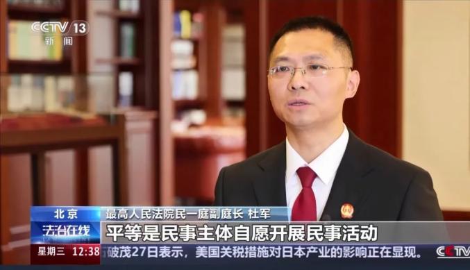最高人民法院民一庭副庭长 杜军:公序良俗原则的适用,能够为行使权利、履行义务、承担责任划定边界,能够将社会主义核心价值观等精神文明具体化为裁判规则,实现法律与道德的良性互动,补充强行法规范的不足。
