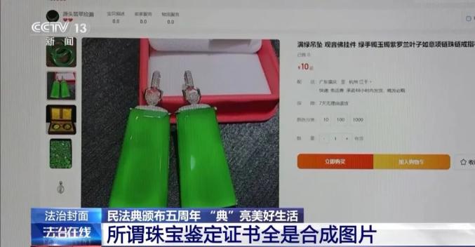不仅如此,沈女士还发现,商家提供的所谓珠宝鉴定证书也全都是合成的图片。沈女士要求商家退款退货,但被商家拒绝。