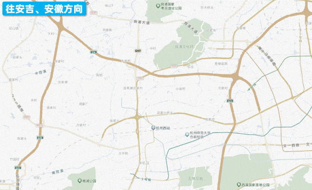 (五)往安吉、安徽方向留石高架路——运溪高架路——瓶窑收费站——杭长(宜)高速。