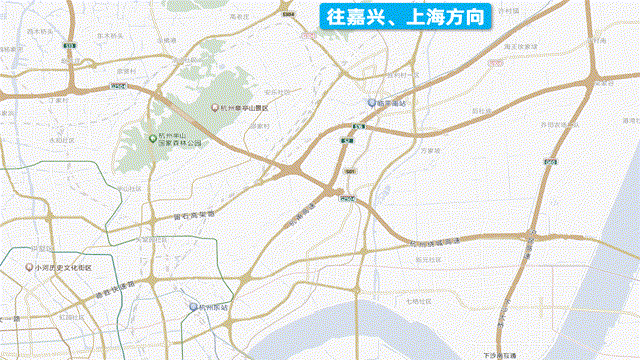 2.高架道路:彩虹快速路(彩虹立交至之江大桥)、中河高架、时代高架路(复兴大桥至彩虹立交)、秋石高架路(艮秋立交至西兴大桥)、杭长高速连接线(留石高架路至紫金港枢纽)、机场公路(萧山城区收费站至新街收费站)、钱塘快速路(彭埠互通至艮秋立交)等高架出城方向也会产生大流量,建议绕行。