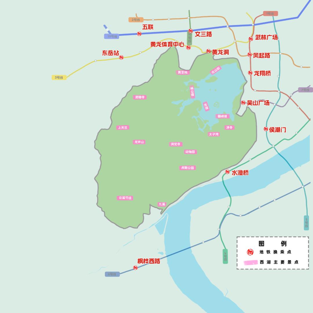 ③乘坐地铁的游客西湖最近的12个地铁站都有公交接驳!在凤起路站(1、2号线)、黄龙洞站(3号线)、东岳站(3号线)、黄龙体育中心站(3、10号线)、水澄桥站(4号线)、吴山广场站(7号线)、龙翔桥站(1号线)、武林广场站(1、3号线)、候潮门站(5号线)、枫桦西路(6号线)、文三路站(19号线)、五联站(19号线)等12处地铁站,可通过“地铁+公交”接驳线直达西湖景区内部景点。