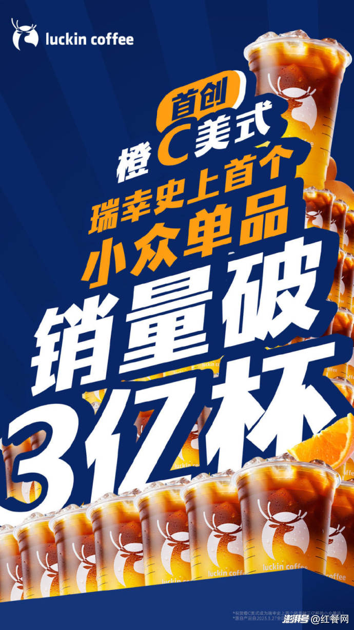 在系列产品上新动作下,瑞幸在果咖系列产品的销售数据上,也交出了一份十分亮眼的成绩单。比如5月14日,瑞幸咖啡就在微博上宣布,橙C美式已成为瑞幸史上首个销量破3亿杯的小众单品。