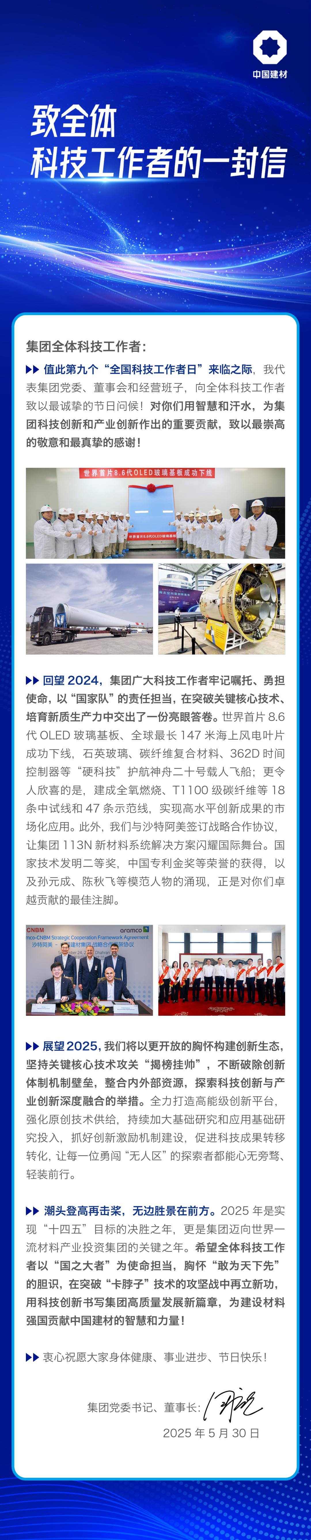 原标题:《致中国建材集团全体科技工作者的一封信》