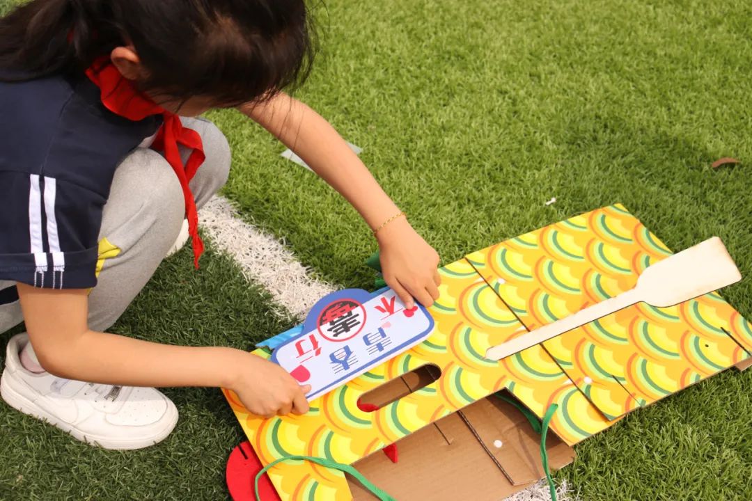 闯关成功后,孩子们将“防毒五彩绳”系在手腕,作为胜利的象征,同时也寓意着远离毒品,健康生活。龙舟破浪“桨”知识