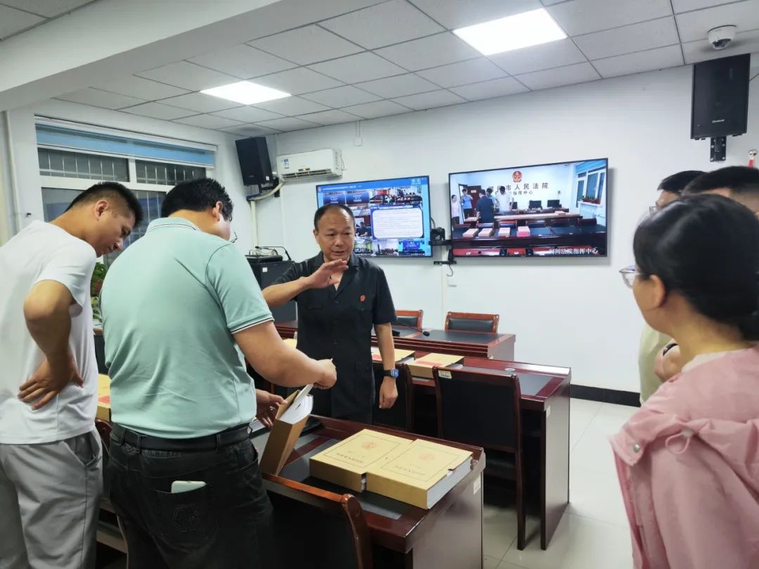 5月27日,沧县人民法院执行局局长魏贺欣等一行7人到河间市人民法院执行局交流执行规范化工作开展情况,河间市人民法院党组成员、专委孟庆强,执行局局长任建河陪同参观并参加座谈。