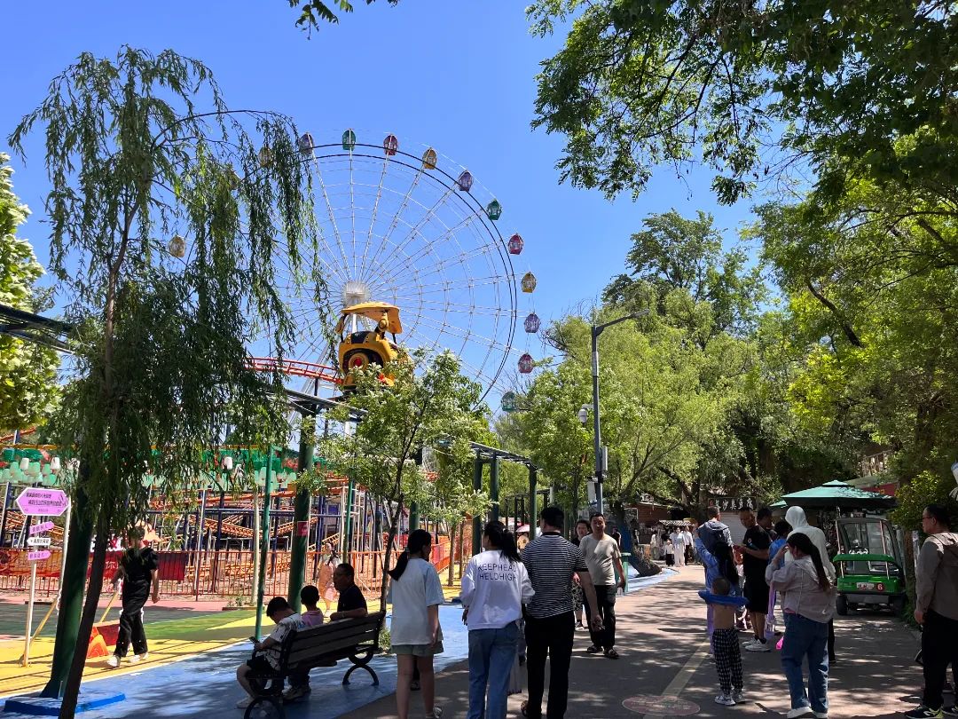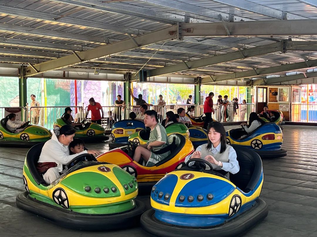欢乐谷里,孩子们的嬉闹声此起彼伏,秋千荡得老高,仿佛要触到蓝天;摩天轮缓缓转动,山间的风车在微风中摇曳,为这幅生动的画卷添上几分童话般的色彩。
