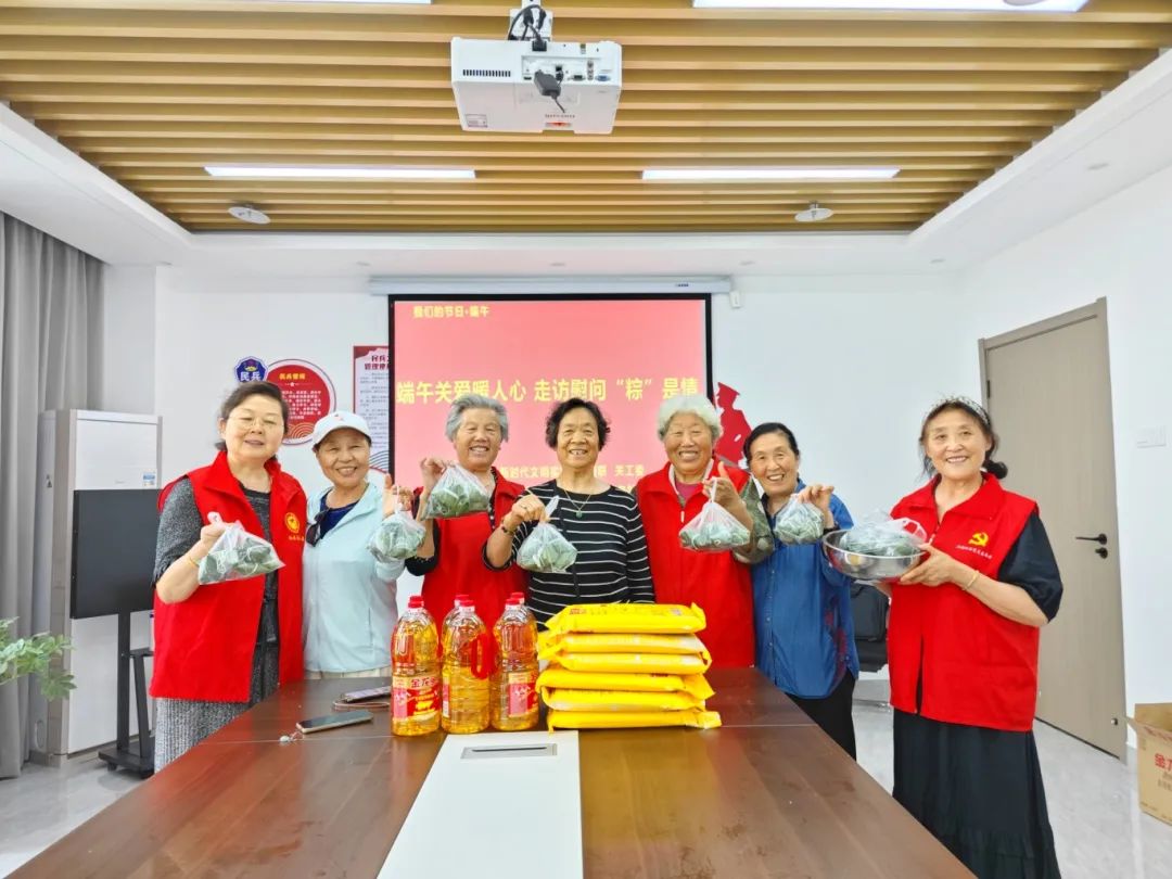 活动现场,辖区10余名党员志愿者、巾帼志愿者围坐在一起包粽子,大家一边交流着包粽技巧,一边分享着各自记忆中的端午故事,现场气氛热烈而温馨。粽子包好后,社区工作人员与志愿者,带着新鲜包制的粽子和牛奶大米等生活物资,走进辖区10余位高龄、独居老人家中,贴心询问老人身体状况和生活需求,并将节日的问候与关怀送到老人心坎上。