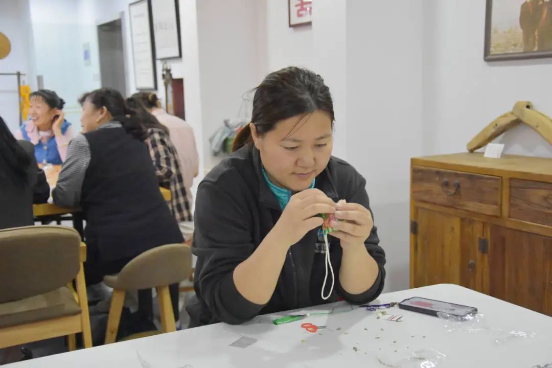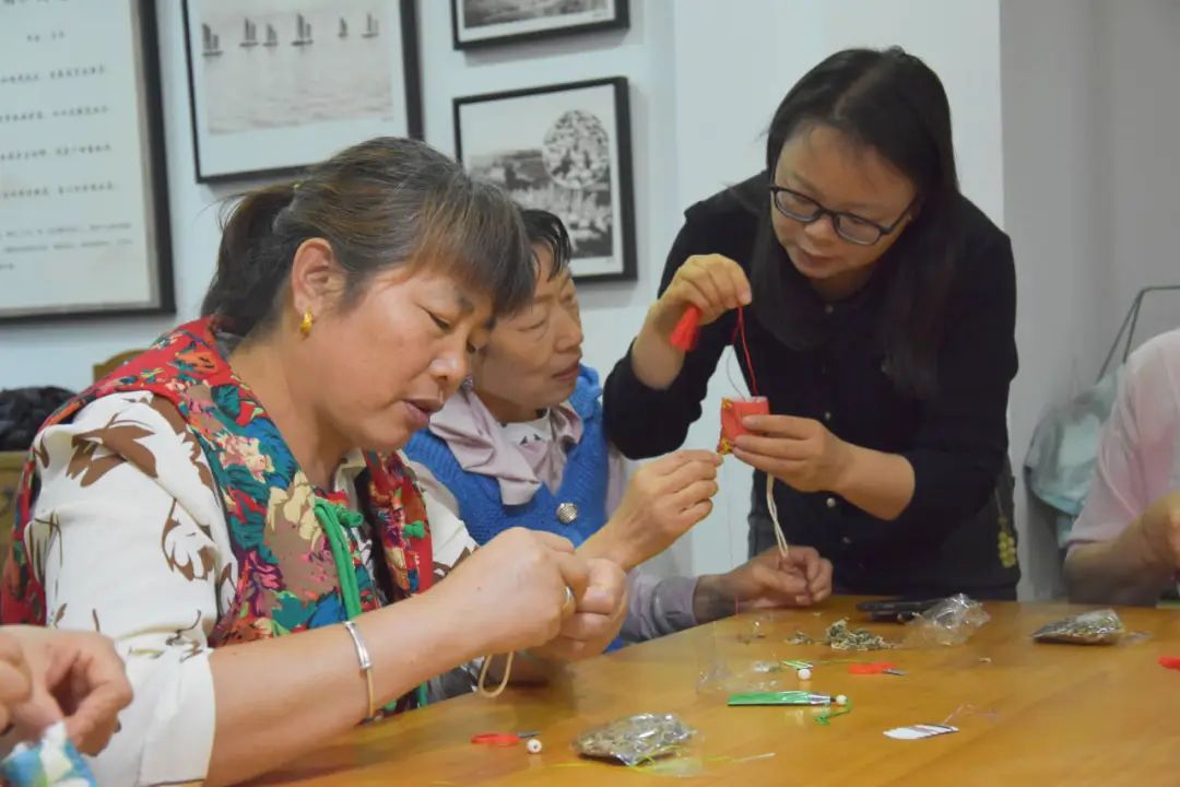在制作环节,居民们围坐在一起,穿针引线、缝合布料、填充艾草,互相交流技巧,分享经验。一针一线中,一个个造型别致、散发着淡淡艾草清香的香囊呈现在大家眼前,看着自己亲手制作的作品,居民们脸上洋溢着自豪与喜悦。