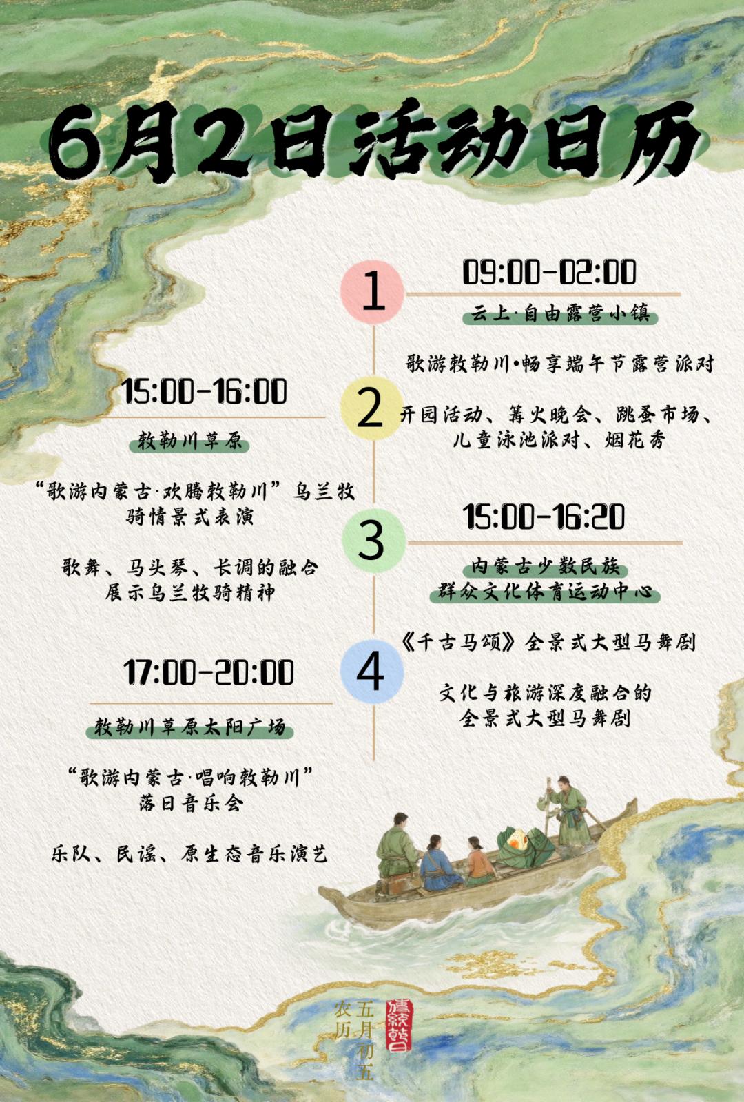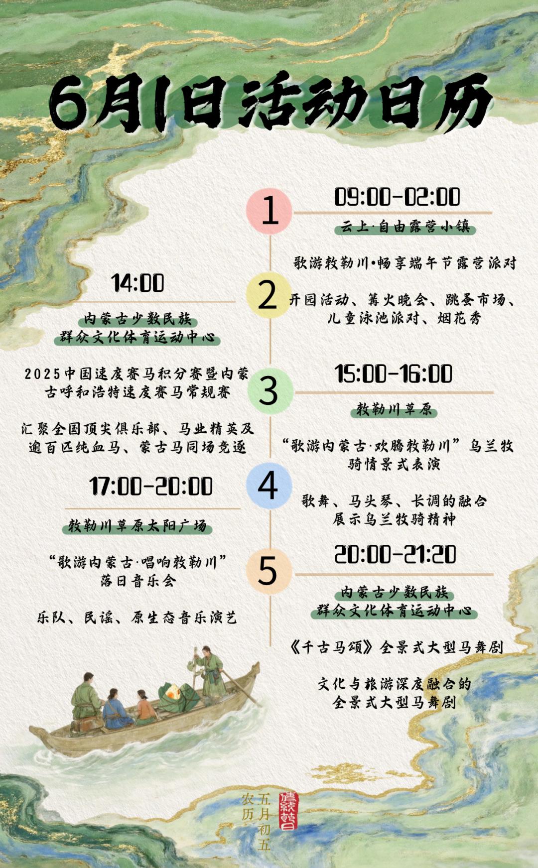 *2025中国速度赛马积分赛暨内蒙古呼和浩特速度赛马常规赛/只在6月1日举办,看准时间不要跑空哦~*《千古马颂》全景式大型马舞剧/5月30日至6月1日,每天晚上20:00-21:20演出;6月2日15:00-16:20演出!