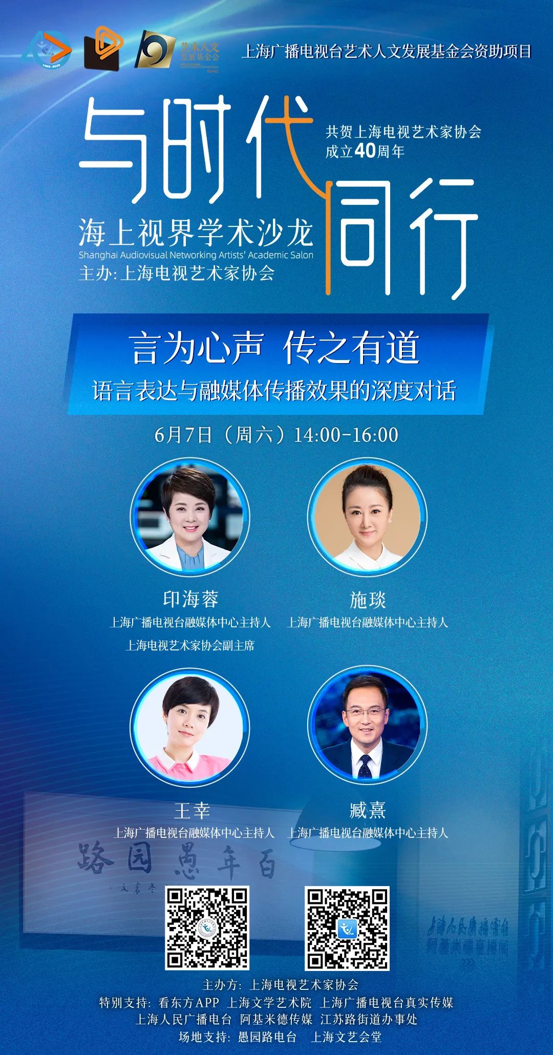 由上海视协全新打造的海上视界学术沙龙第九期——“言为心声 传之有道”——语言表达与融媒体传播效果的深度对话将于2025年6月7日在阿基米德愚园路电台举行。
