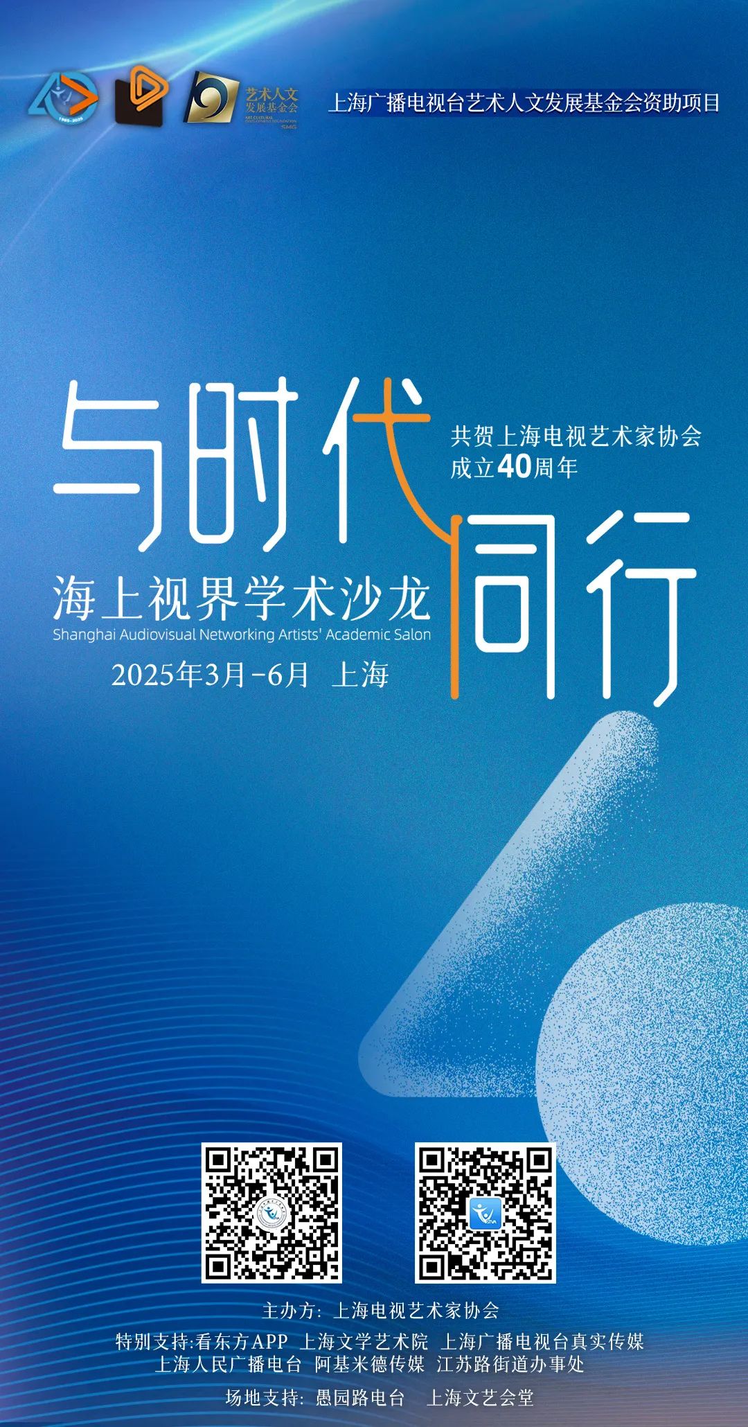 上海视协全新打造的文艺志愿工作品牌活动——海上视界学术沙龙,以“与时代同行——上海电视艺术家协会成立40周年”为主题,于2025年3月下旬至6月举办十余场与电视和网络视听艺术相关的“学术沙龙”,地点定于愚园路984号阿基米德愚园路电台、上海文艺会堂。