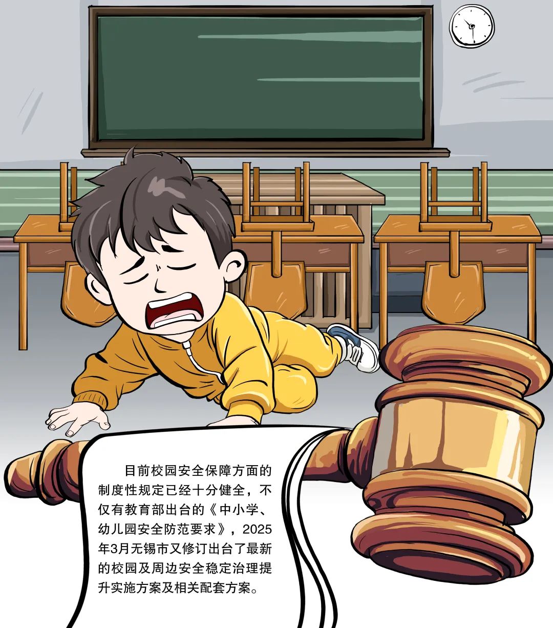 采访中,案涉小学分管安全的副校长说,目前校园安全保障方面的制度性规定已经十分健全,不仅有教育部出台的《中小学、幼儿园安全防范要求》,2025年3月无锡市又修订出台了最新的校园及周边安全稳定治理提升实施方案及相关配套方案,包括校园治安防控专项提升方案以及食品安全、消防安全、危化品安全、校舍及在建工程安全、校车安全等11个具体提升方案,为学校安全管理工作提供了具体操作指南。