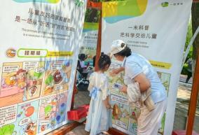 活动现场举办了 “一米科普”漫画展,展出30组儿童科普漫画,包括交通安全、人群踩踏、火灾避险、落水救援、防拐防骗、垃圾分类等各类儿童“保护自己”和“保护世界”的安全主题。漫画展板的高度均控制在一米以内,让儿童可以轻松学习科普漫画内容。